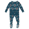 Print Muffin Ruffle Footie W/2-Way Zipper - Peacock Mermaids & Pearls