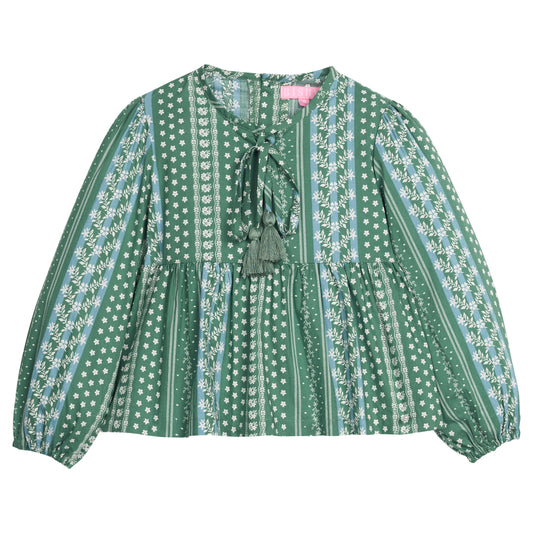 Long Sleeved India Top - Greenwich Garden Green