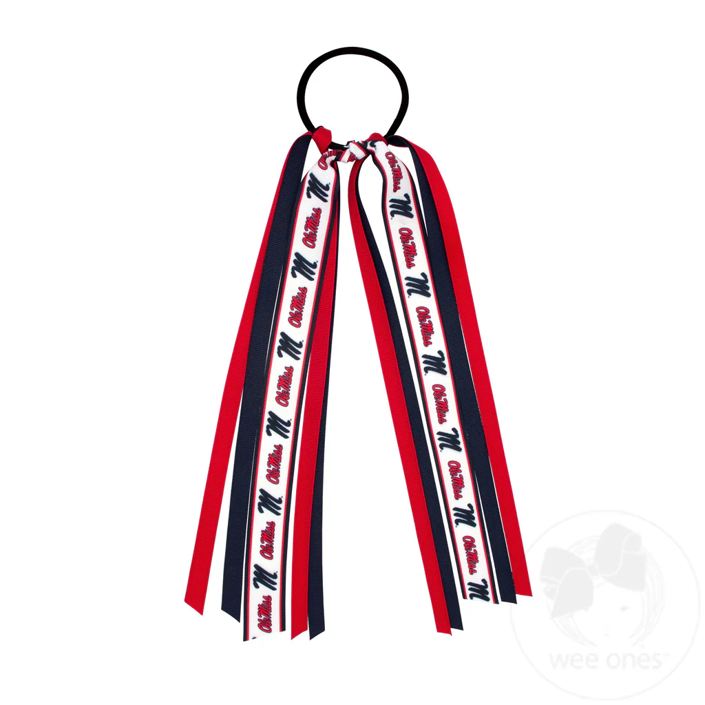 Show your team spirit by wearing this officially licensed collegiate streamer hair pony from our Game Day Collection. This signature collegiate logo print grosgrain streamer pony is perfect for girls of all ages.