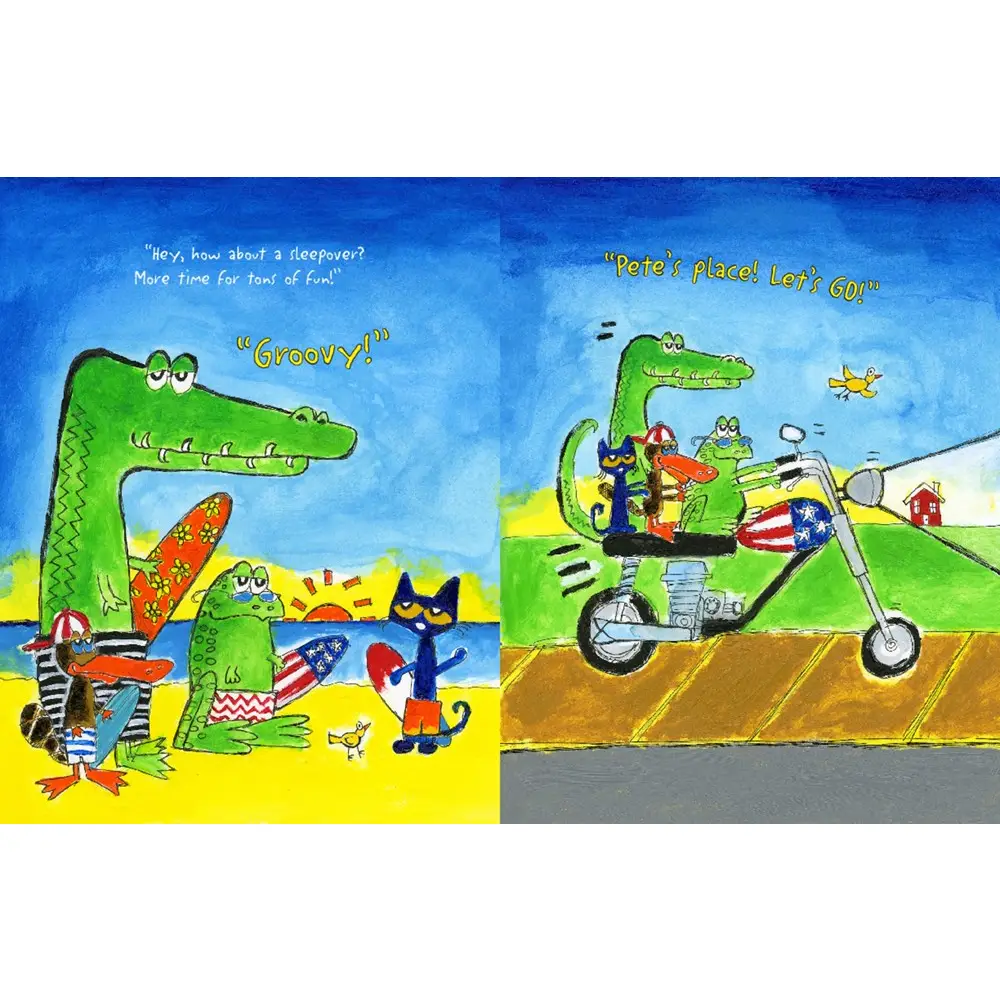 Pete the Cat and his friends are having so much fun playing and surfing in the sun, they don't want the day to end! Pete has an idea: how about a sleepover? Groovy! As the night gets later, it's time for bed. This cool cat needs to catch some zzzs, but Pete's friends aren't ready to go to sleep just yet. Then Pete has another idea;will it work?