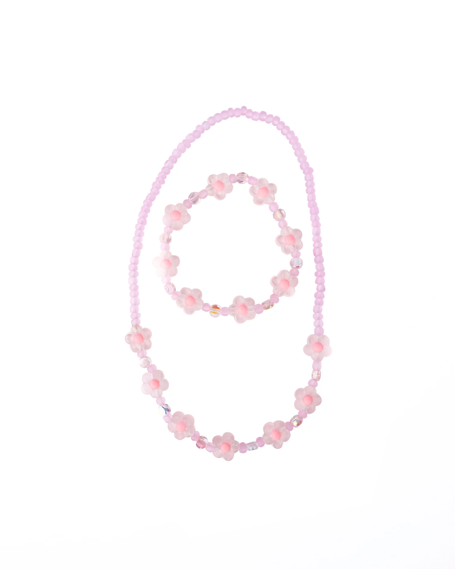 Add a touch of blooming beauty to any outfit with thePink Crystal Blooms Necklace & Bracelet Set! This charming set features chunky pink flowers paired with soft-touch pink beads, creating a delightful combination of texture and sparkle.