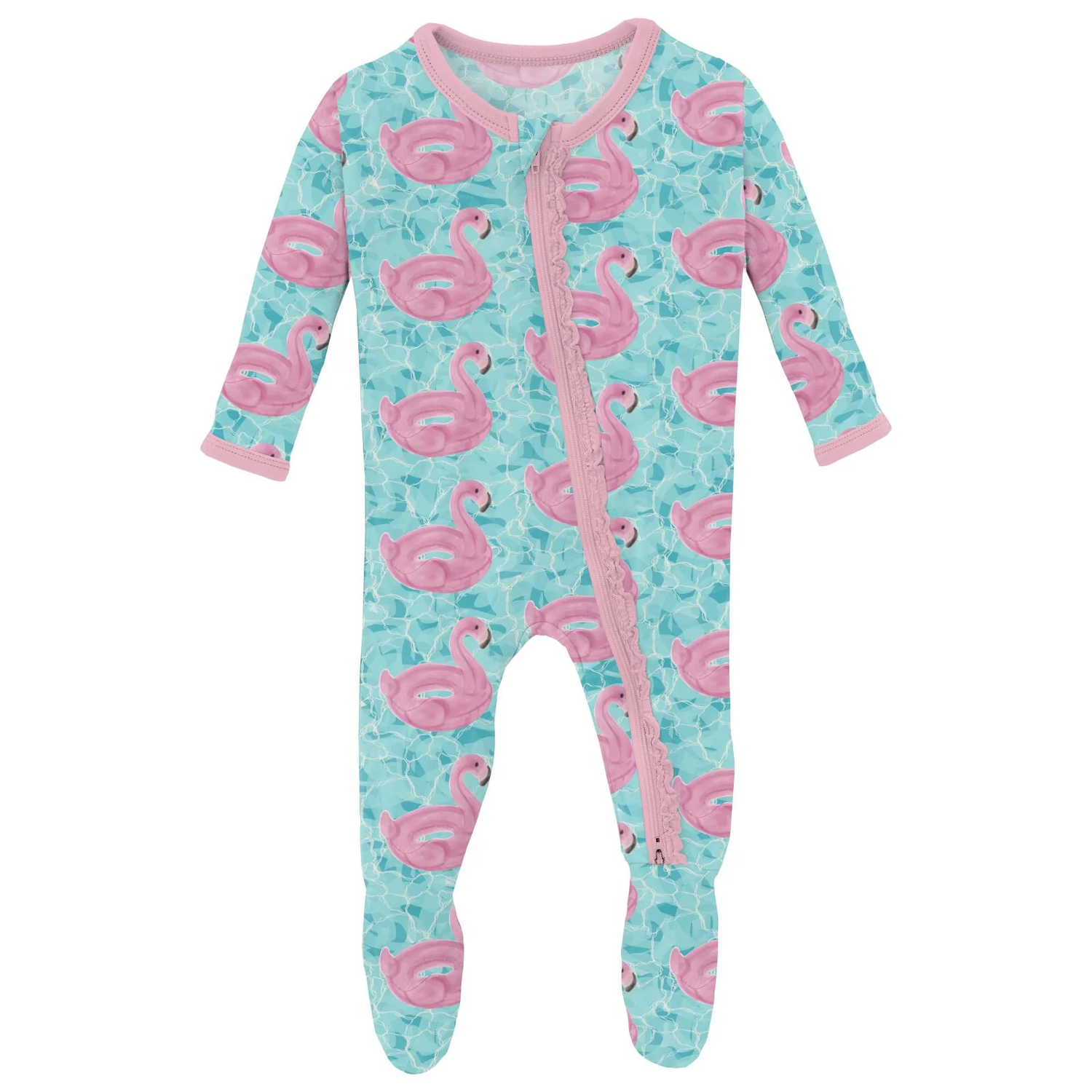 Print Muffin Ruffle Footie with 2 Way Zipper in Pool Party