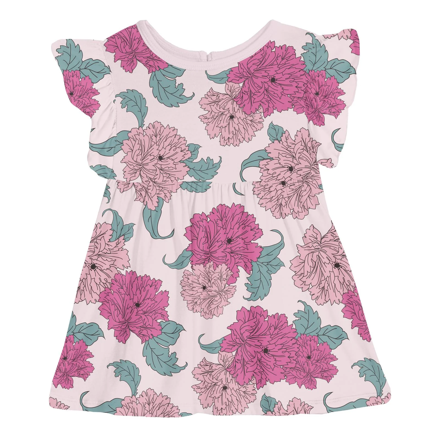 Print Short Sleeve Lola Swing Dress in Shrinking Violet Peonies