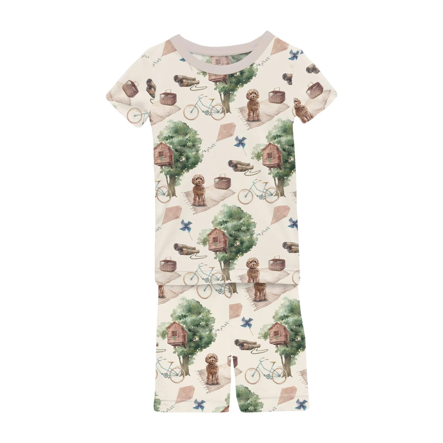 Print Short Sleeve Pajama Set with Shorts in Natural Tree House