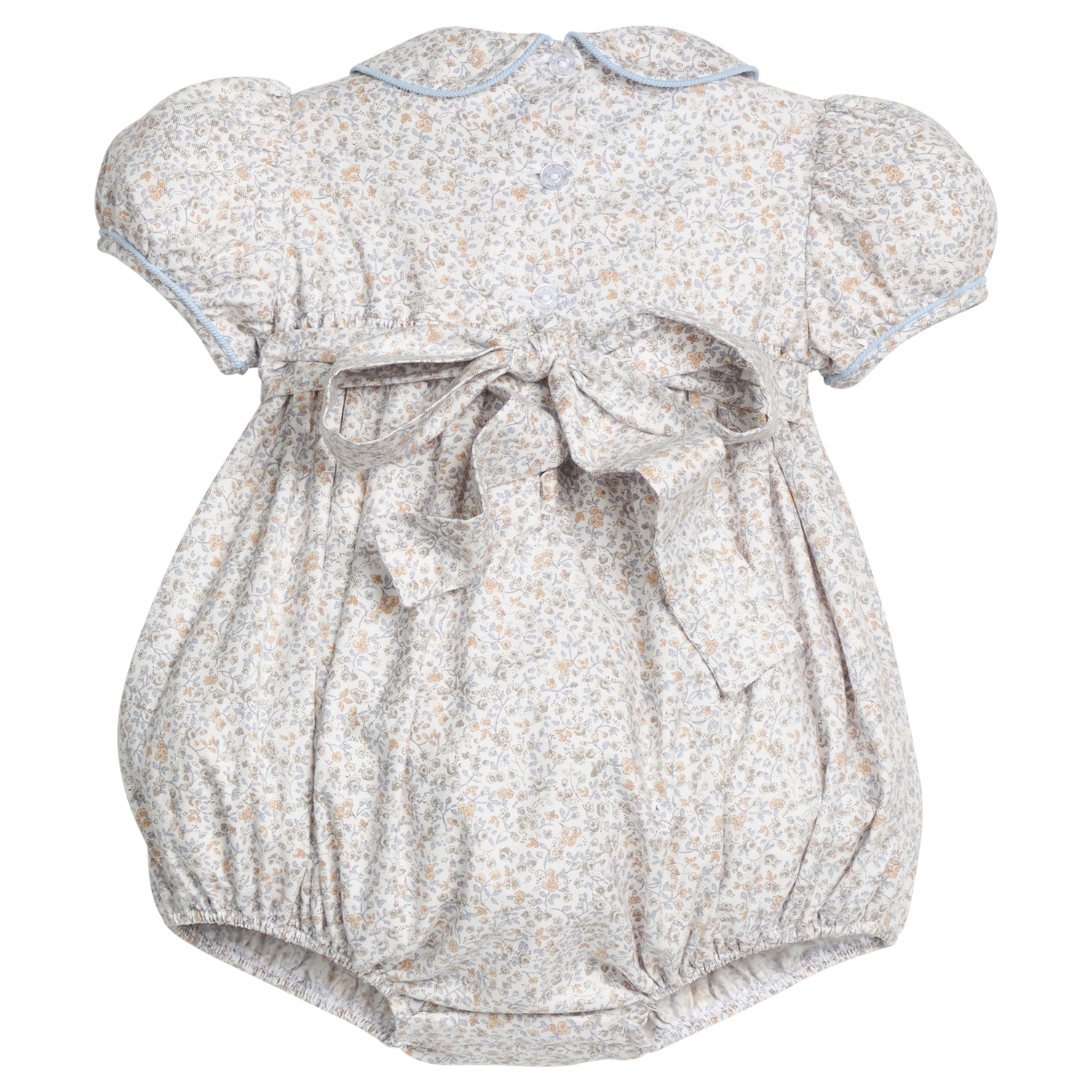 Meet Winthrop, a timeless and elevated collection of soft blue and brown hues for Fall. Our Smocked Peter Pan Bubble features capped sleeves and a peter pan collar with beautiful smocking at the chest and a tie sash in the back. Light Blue Corduroy piping and delicate rosette detailing give this Winthrop Floral style an extra special touch, and big sister can match in our Smocked Peter Pan Dress for the perfect family photos.
