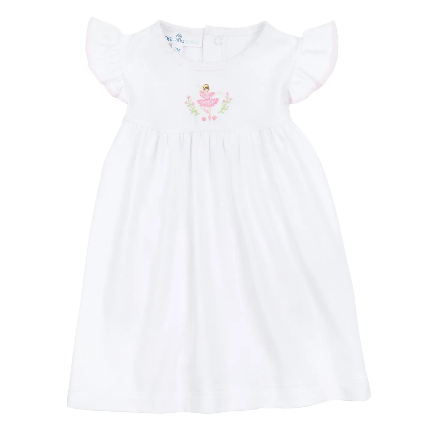 Magnolia Baby - Twinkle Toes Embroidered Headband Adorn your little dancer with this enchanting Twinkle Toes Embroidered Headband. Featuring delicate embroidery of tiny floral accents, this headband adds a touch of sweetness reminiscent of a ballerina's bouquet. The comfortable stretch ensures a secure yet gentle fit, making your baby girl look like a prima ballerina ready for her first bow. Features: * 100% Pima Cotton: Exceptionally soft and gentle fabric for baby's skin. * Delicate Hand Embroidery: Features tiny floral accents. * Stretchy Band: Ensures a snug and gentle fit. * Bow Detail: Adds a charming touch. Benefits: * Gentle on Skin: Soft fabric ensures baby's comfort. * Easy Care: Hand wash for best results. * Ballerina Style: Delicate embroidery evokes a tiny dancer's charm. * Mix and Match: Coordinates beautifully with other items in the Twinkle Toes collection. Complete your little one's ballerina look with this precious Twinkle Toes headband today!